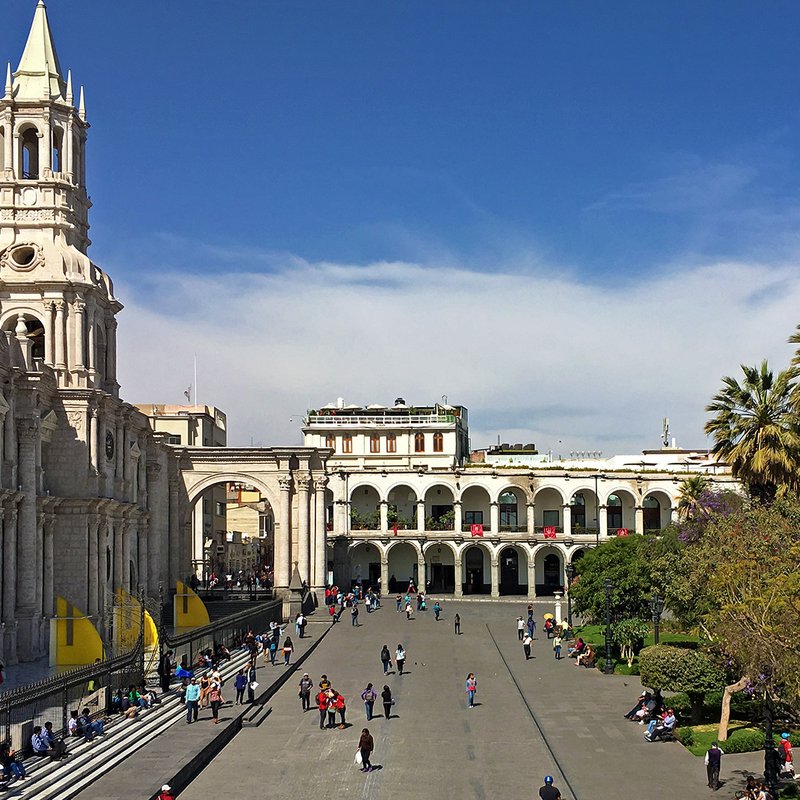 Vei pleca intr-un tur de oras pe strazile coloniale ale Arequipei. Vei incepe vizita in piata centrala a orasului unde se afla si Catedrala din Arequipa, un frumos exemplu a arhitecturii peruane din secolul al XIX-lea. Vei vedea si alte atractii ale orasului precum Plaza de Armas, Primaria, Compania de Jesus si Districtul Yanahuara.