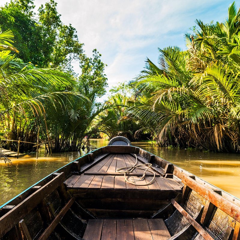 Te vei bucura de o plimbare cu un vas traditional pe canalele Fluviului Mekong. Vei trece pe langa fabricile locale ce produc pasta de orez si dulciuri din nuca de cocos si vei putea degusta din aceste produse traditionale. Vei descoperi minunatele peisaje din zona si vei putea observa traiul localnicilor din Delta Mekong. Vei ajunge si in bucataria unui restaurant local unde iti vei pregati pranzul impreuna cu un bucatar chef.